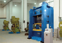 机身及滑块采用全钢焊接/铸造结构; B为刚性保护、D为液压过载保护; 全封闭齿轮传动; 偏心连杆传动及导柱导套(-E)结构; 自动定时、定量、定点浓油、稀油集中润滑; 纯气式/液压式/可调气垫, 浮动镶块式/片式离合器制动器; 采用PLC双回路电气控制系统, 可选配触摸屏数字智能控制系统; 10000KN以上带活动工作台。
